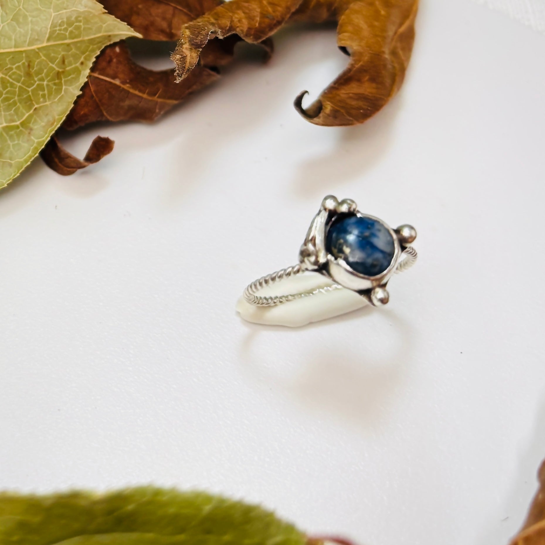 “SODALITE SIMPLICITY”~ Side Leaf Adorned sodlaite Ring with Delicate Twist Band